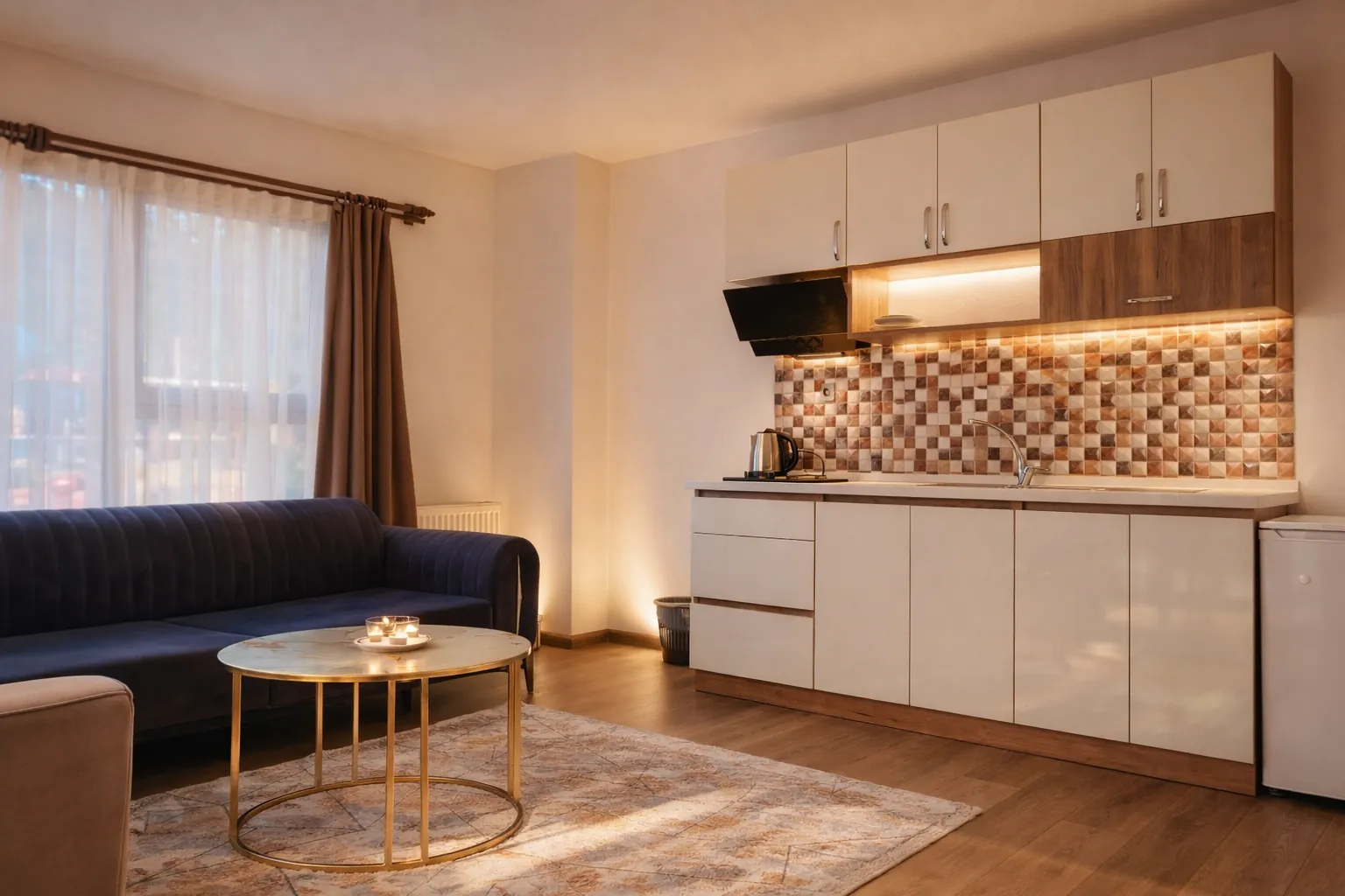Ankara’nın kalbi Mamak’da, tam donanımlı mutfak ve geniş yaşam alanlarıyla ev sıcaklığında bir konaklama deneyimi sunuyoruz. İster iş ister aile seyahatlerinizde, konforun ve güvenin adresi.